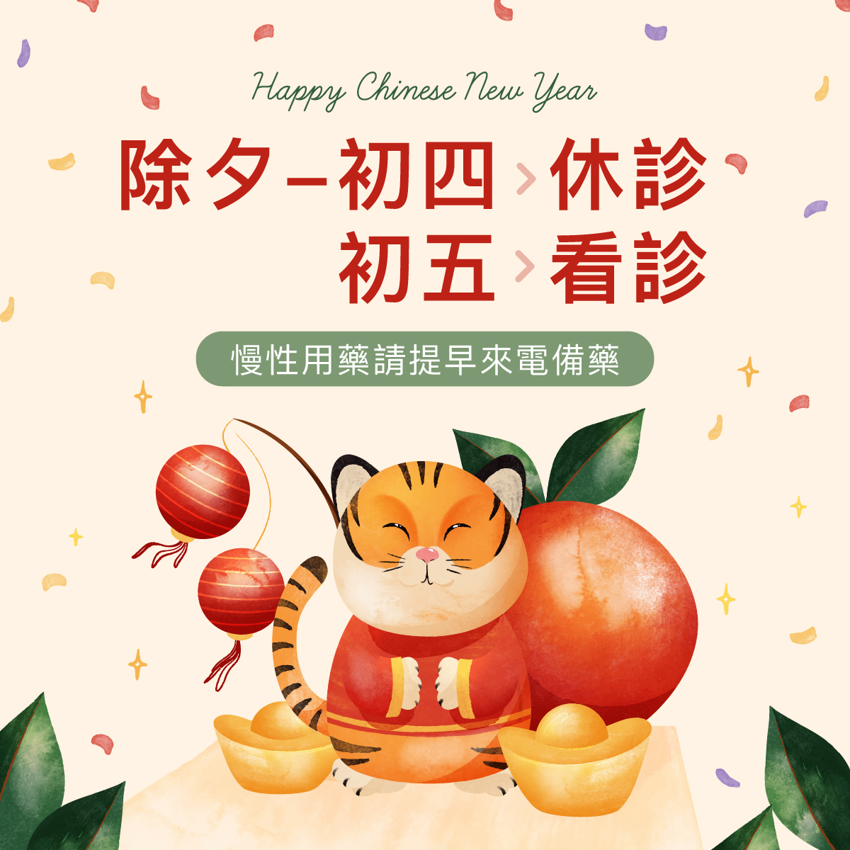 農曆年假即將到來,凱特森貓醫院在年假期間:除夕到初四休診,初五正常看診,請拔麻注意以下事項: